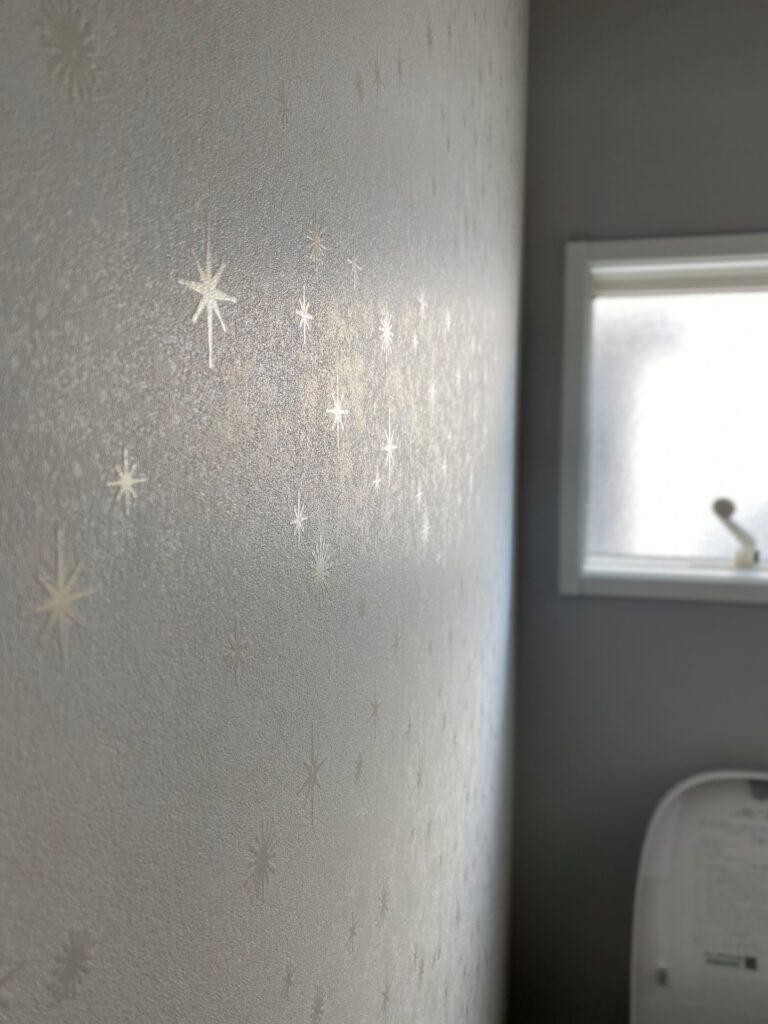 • 遊び心のある内装:トイレにはキラキラと輝く星模様の壁紙を、2階への階段にはスタイリッシュなモノトーンデザインを採用しています 。